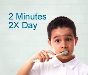 • Brush 2 times a day for 2 minutes – before bed is extra important