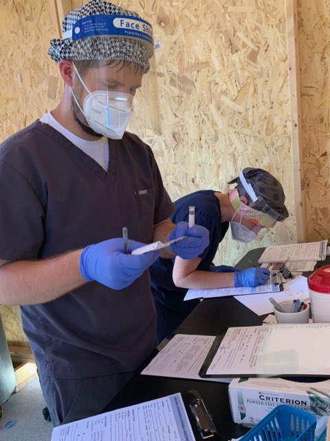 The rented tents at the site were recently upgraded with the construction of ‘Fort Packard,’ a solid enclosure with an awning, locks to securely store supplies, and air conditioning (almost up and running). Packard Health Facility Manager Chris Ozminski tackled the build, going above and beyond to get the new structure to the team as quickly as possible.
